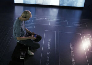 "Tribunal 45" im Ausstellungsraum spielen