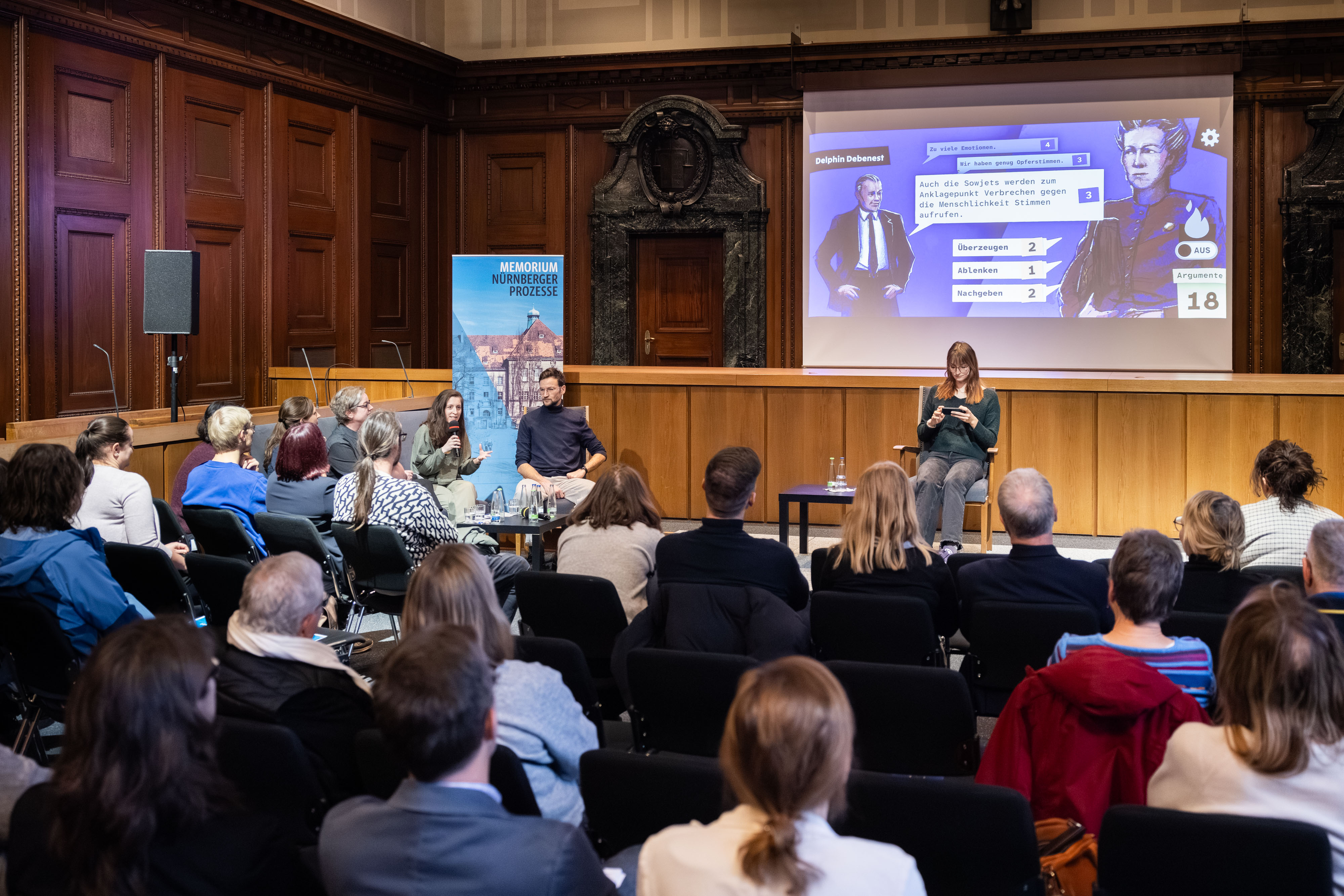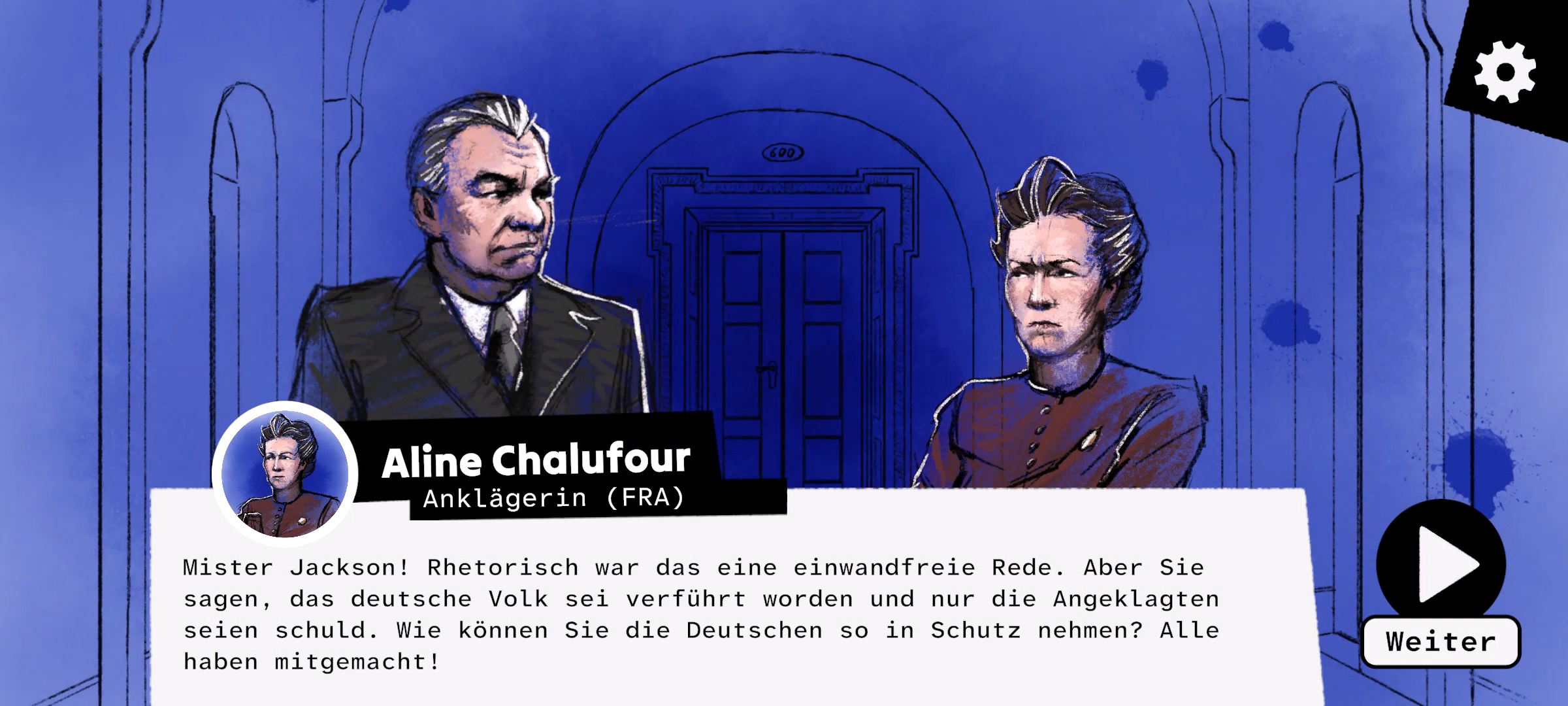 Vor 80 Jahren begann im Nürnberger Justizgebäude das Internationale Militärtribunal zur Aufarbeitung der NS-Verbrechen. Zum Jahrestag am 20. November 2025 veröffentlicht das Memorium Nürnberger Prozesse zusammen mit dem Games Studio Playing History das Serious Game "Tribunal 45". Es versetzt die Spielerinnen und Spieler in die Rolle der Juristin Aline Chalufour, die 1945 Teil des französischen Anklageteams war.