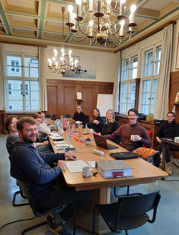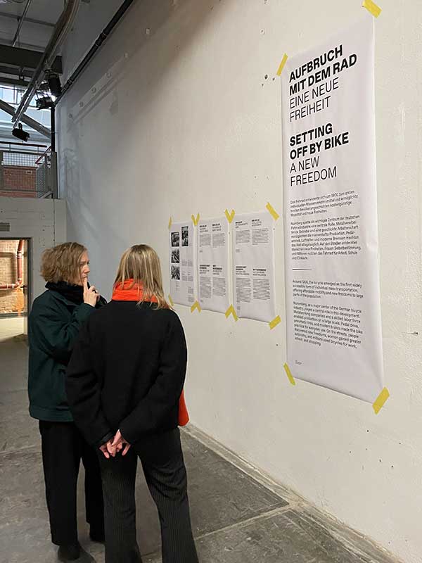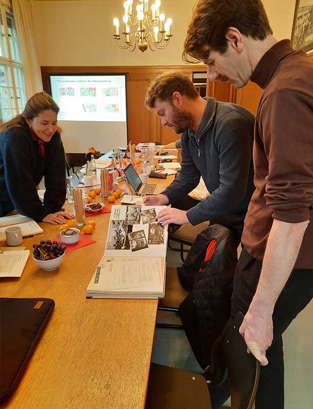 Es wurden neue Entwürfe präsentiert, ausgewählte Objekte begutachtet, eine Farbauswahl für das zukünftige Ausstellungsdesign abgestimmt sowie erste Layouts für Ausstellungstexte getestet. Ein Besuch der aktuellen Museumsbaustelle rundete das Programm ab. Im Mittelpunkt des Workshops stand diesmal die Museumsstraße: Während im vorderen Bereich eine neue Ausstellungseinheit zur Nürnberger Fahrradindustrie entsteht, bleiben die beliebten Einbauten wie z.B. das Klassenzimmer, der Friseursalon, der Kolonialwarenladen, das Kino oder die Dampfmaschine erhalten. Im hinteren Teil der Museumsstraße entstehen viele weitere neue Ausstellungseinheiten auf, die man sich freuen darf.