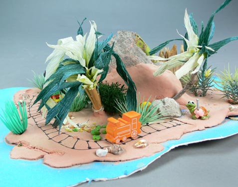 "Eine Insel mit zwei Bergen und dem schönen blauen Meer mit viel Tunneln und den Gleisen und dem Eisenbahnverkehr, na, wie soll die Insel heißen, ringsherum ist weißer Strand, jeder sollte einmal reisen in das schöne Lummerland". Unter diesem Motto sind Kinder und Erwachsene eingeladen, sich ihr eigenes Lummerland zu schaffen. Es wird gestaltet mit Ton, Papier, Holz, bunten Steinen, Muscheln und anderem mehr. Alle Kreationen können mit nach Hause genommen werden.
