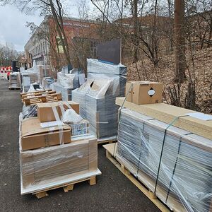 Jetzt geht es wirklich los! Das, was das Team des Dokuzentrums zusammen mit seinen Gestaltern in den letzten Jahren am PC und in langen Abstimmungsrunden überlegt, konzipiert, entworfen und korrigiert hat, nimmt nun endlich Gestalt an. Die erste Lieferung Möbel ist in Nürnberg angekommen – noch verraten nur die Beipackzettel, welches Element aus welchem Kapitel sich hinter der Folie auf den zahlreichen Paletten verbirgt. Das Montageteam der Tischlerei arbeitet vor Ort schnell – bereits am nächsten Tag sind schon erste Möbel und Trägerelemente zu erkennen. Bei 1600 m² Ausstellungsfläche wird es trotzdem noch eine ganze Weile dauern, bis alles steht.