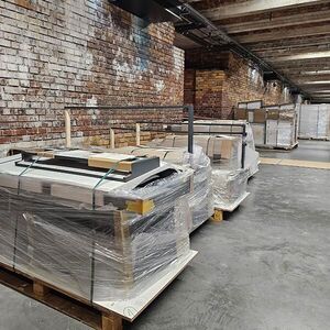 Gemeinsam mit unseren Gestaltern haben wir in einen ersten Farbproof durchgeführt. Ziel dieses Tests war es, die spätere Wirkung des Drucks auf den für die Möbel vorgesehenen hinterleuchteten Glasplatten realistisch zu beurteilen. Dabei wurden insbesondere die Farbwiedergabe, die Kontraste sowie die Bildqualität sorgfältig geprüft, um sicherzustellen, dass das visuelle Erscheinungsbild unseren gestalterischen und qualitativen Anforderungen entspricht. Ebenfalls gemeinsam abgestimmt haben wir die Einpassung von Vitrinen und Monitoren in den Druck. Abstände und Ränder mussten für ein harmonisches Erscheinungsbild der Gesamtplatte sorgsam festgelegt werden.