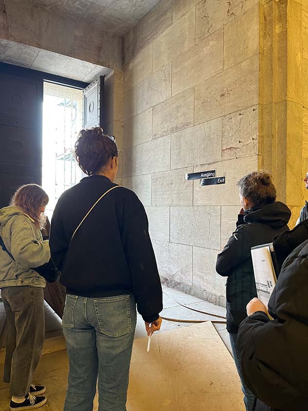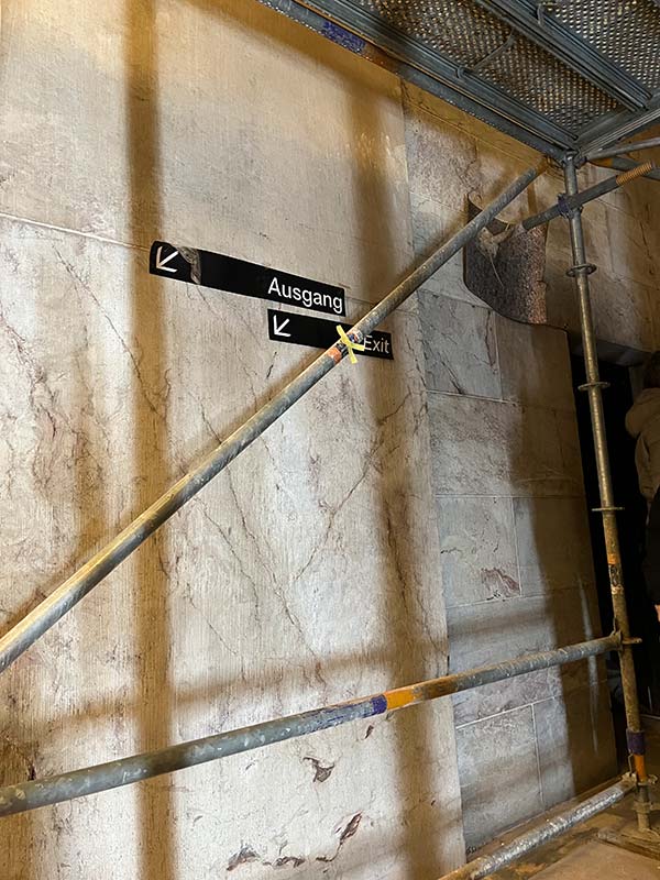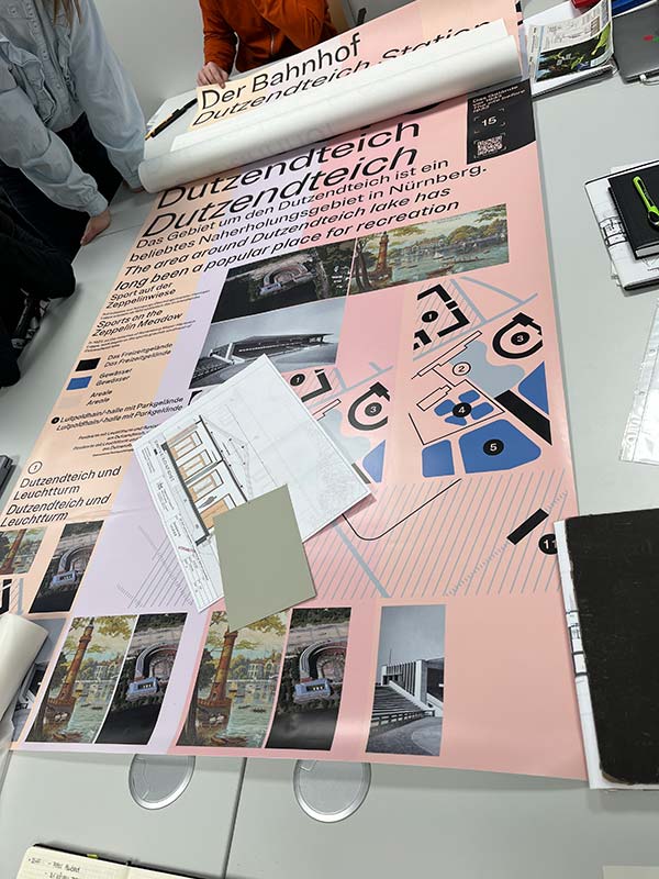 Die Planungen und Bauarbeiten für das Projekt "Lern- und Begegnungsort Zeppelinfeld und -tribüne" werden kontinuierlich fortgeführt. Im Rahmen einer Baustellenbegehung sowie eines Workshops wurden zuletzt zentrale Aspekte des Leitsystems weiterentwickelt. Dabei stand insbesondere die Frage im Fokus, an welchen Stellen Beschilderungen notwendig sind, um Besucherinnen und Besuchern sowohl die Orientierung zur Zeppelintribüne als auch innerhalb des Bauwerks zu erleichtern. Ergänzend präsentierte das Gestaltungsbüro facts and fiction erste Probedrucke für die Ausstellungseinheiten, die einen vielversprechenden Eindruck vom zukünftigen Erscheinungsbild vermitteln.
